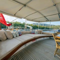 Very comfortable gulet with 4 spacious cabins each with a shower (shower cubicles) and toilet with electrical pump system. Fully air-conditioned. 2 master cabins with a double bed. 2 of the cabins with twin beds (these beds can be combined into one double bed upon request). Large salon with dining facilities. Fully equipped separate galley. Very spacious sun deck with sun mattresses. Cushioned aft deck with outdoor dining facilities. Separate crew quarters with their own shower/wc.