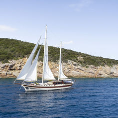 Extremely large deluxe gulet. Estrella De Mar can accommodate 10 guests in 5 cabins including 1 master cabin with 1 double bed and a bathroom en suite, 2 spacious cabins with double bed and a bathroom en suite. 2 spacious twin (triple) cabins with a bathroom en suite. Shower cubicles in every bathroom. The toilets are electrical flush toilets. She has a luxury interior design. She has one large delightful and extremely luminous salon with a dining place and sofas. Very large, comfortable cushioned sunbathing areas on the sun deck and dining place on the large cushioned aft deck. Fully air-conditioned. Fully equipped separate galley. Separate 3 crew quarters with their private facilities.